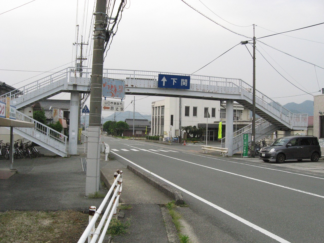 車はまた区は知ってませんが、これだけ立派な跨線橋と遠くの「下関↑」の漢人がかかってることからすると、バイパス開通前はほんとに危ないくらい交通利用が多かったのでしょう。これだけでもこの道が旧国道2号だったのがわかります。