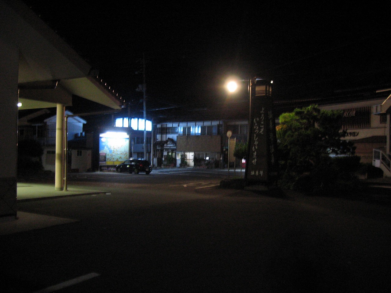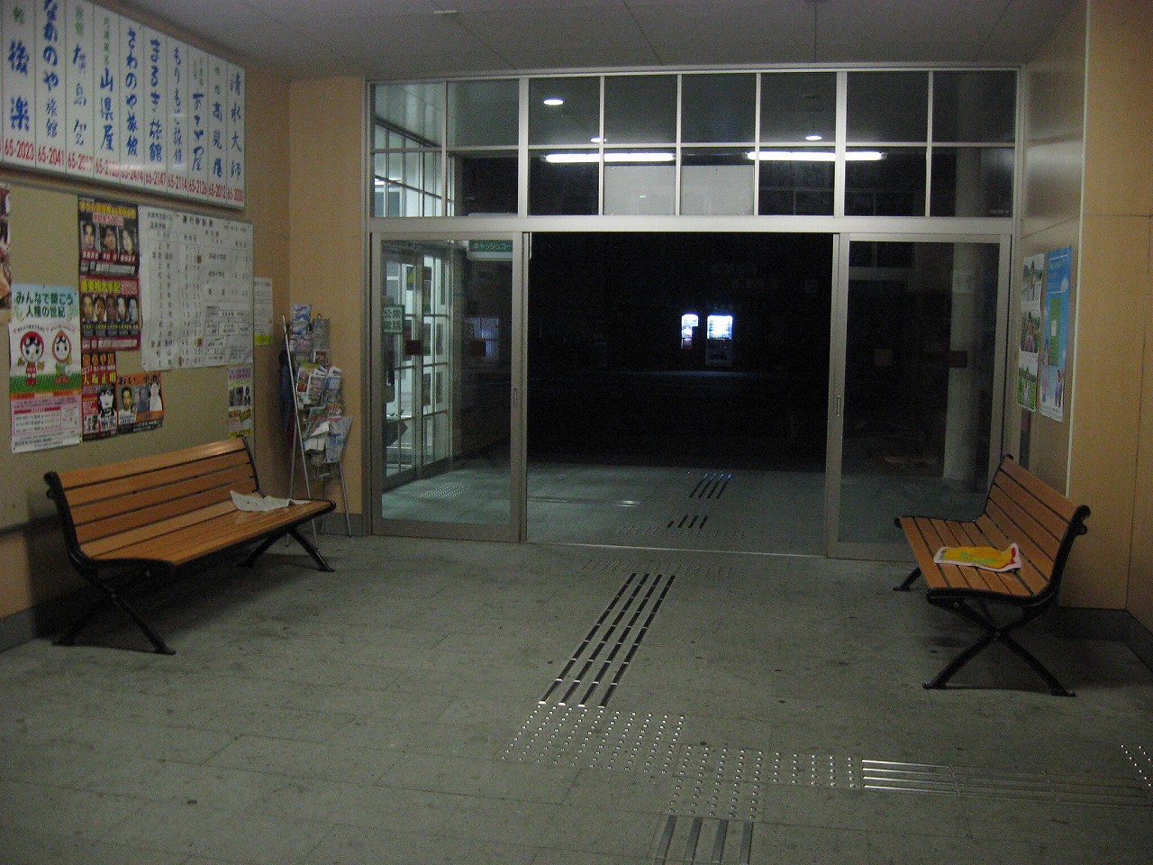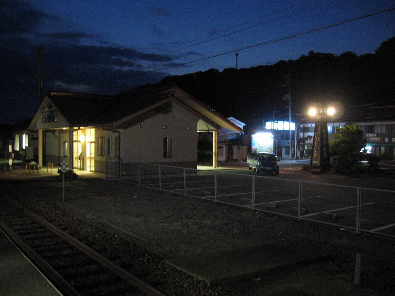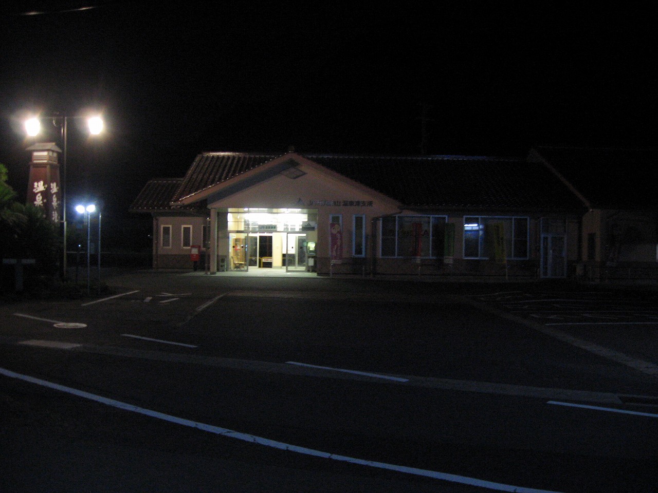 夜の駅を鑑賞している余裕はあまりなかった。建物は新築で、旅情は減じていた。しかし機能として考えれば、まった問題ないのかもしれない。開放感があり旅館の広告もあり、それでほんのり山陰感もある。駅前は昔のままらしく、小さな海辺の温泉街の雰囲気が残存していた。