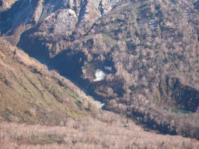 湯煙の上がっているところが「新湯」でその隣の池が刈込池。