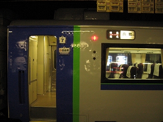五稜郭に入るころには速度をすっかり落としていて、以来あの走りを見せることはなかった。駅前の大型電気店の明かりが見えて、街に入ったという感じだ。ここを出れば放送で言われなくても、めいめい網棚から荷物下ろすなどし いそいそと降りる支度をしはじめる。その光景の中、本日もJR北海道をご利用くださいましてありがとうございました、まもなく終点函館、函館です、と流れるのは、北斗の車内のいつもだろう。