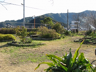 ホームから出た。何もない土や泥の敷地がしばし広がる。その中に草がしっかり根付いた未舗装の短いホームが残っているのは、そこが水捌けもよく、誰も足を踏み入れないからのようだった。その短さからしてたぶん貨物用のものだったのだろう。駅前のかなりの部分が旧駅構内となっているようだ。土を踏みながらあたりを歩いてみると、ちょくちょく水溜りが見つかり、午前は雨が降ったのかと思われた。今はもう快晴そのものとなっている。よかったものだ…。この土の広場も駅出口あたりは庭のようにされていて、デラウエアのような南国のものから、細い枝の植栽などがところどころ植えられており、ささやかな南国植物園のようになっていた。花も、地面の緑の草々も少しあって、全体に緑が多かった。