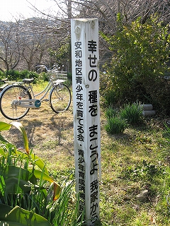駅舎がないから、やはりホームの待合所の壁が駅のしるしを果たしていて、そこに安和駅という駅名表示が出されていた。殊に駅たらしめているのは、その壁と、ホームの見える部分だけだ。しかしここは坂道を上ってきて広がる土の敷地だから、その不思議さから、ホームの片鱗だけでも、この駅はこんな駅として、人を納得させそうだ。