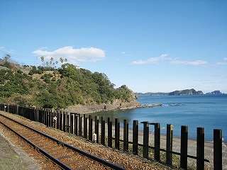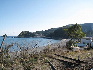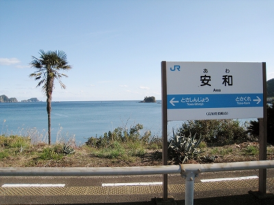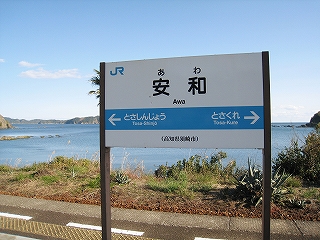 白瑠璃の薄波と瀝青の風のただなかで、どれほどの時間が過ぎただろうか。時計を見るともう40分経っていた。まだまだ居たりない。なのに、もう駅に向かわないといけない。安和駅では60分の滞在の予定だったが、ここは2時間ぐらい取ってもいいところだった。3時間あったら、うち1時間は喫茶店なんかに入りたいな。駅の近くにあった標柱による、四国断崖の道を合わせるなら半日あってもいいかもしれない。