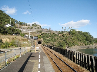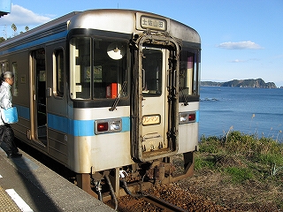 列車がやってきた。とたんにその人は現実的な目つきになる。私も視線を落とし列車の近づいてくるのを待つ。列車は1両の土佐山田行きだった。たとえこの列車を乗り通しても、高知圏内からは抜け出さないわけだ。高知西部の絶海の印象を得たまま、須崎へと向かい、 高知の旅は夜までまだ続く。