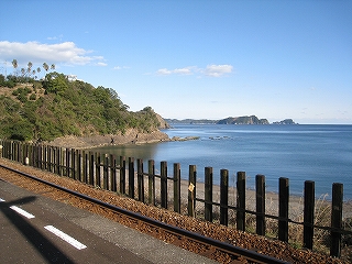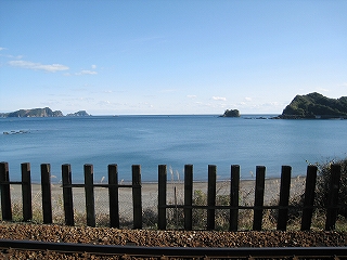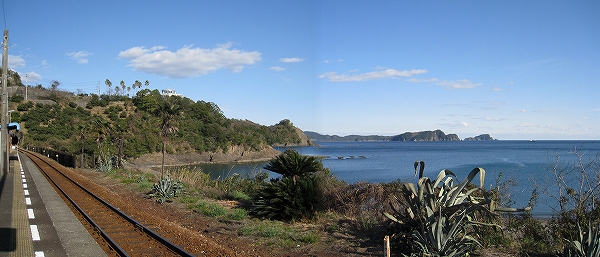 まもなく安和です、という自動放送が入ると、いっそう固唾を飲み、手袋をした手に汗を握った。ここで降りるためにいままで…。ぼうっとしてそのまま行ったらどうしよう…。そういう考えを頭の中でできるだけ狭めて、何も考えない領域を作ろうとしていると、トンネルの中から光の見えるころ、列車は減速しはじめ、外へと出てゆっくりホームへと辿り着いていった。列車は停車。また車窓から海が広がり、山側に座った人たちを、車内を、海色ですっかり照らした。こんどはみんな黙っていて、ただもう車窓を見ている。海側に座っている人の中に少し首をよじったりしている人もいた。私は1人で足早に車内を歩く。こんないいところで降りるの? というような視線を感じる。前のドアから出るときは、ゆっくりと出た。再び冬の懐かしい外気。列車はカラカラおとを立てて停車している。早く行ってほしいと思った。なぜならまた私を吸い込んで連れて行きそうだったから。列車は扉を閉じ、発車。私を1人置いて去っていく列車。確かに列車が消えるまで見送った。そうして、眼前には大海原が見晴らせるようになった。声も出ぬ蒼海。美しい断崖。鼓動はいまだに収まらず、乾燥した空気ばかりを吸う。