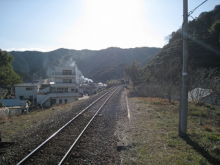 須崎方の風景。左、土手の上に駅があり、ちょっと見えた。