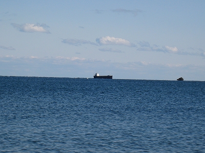 冷たい空気の中、ただぼうっと眺めていると、ずっと遠くに小さくタンカーがあった。じっと見つめていると、じつにゆっくりと転回している。長い時間をかけて転回し終わると、もう区別というものがなさそうな大海原へと走り出していった。どこへいくのだろうか。
