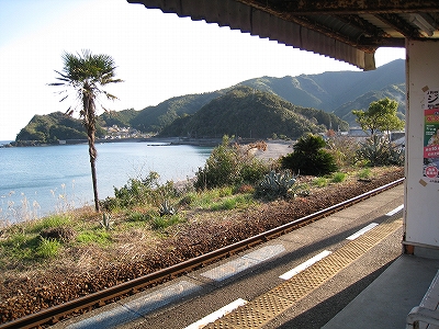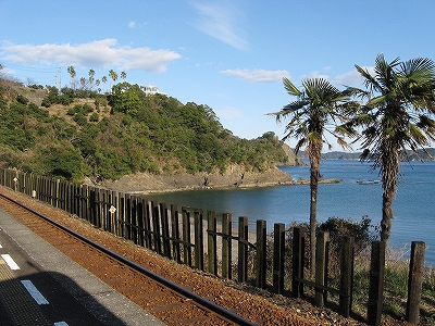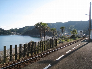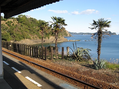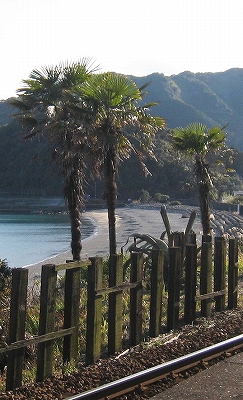 その端のあたりでは線路と海側を隔てるのには無骨に枕木がずらりと打たれてあった。この駅にかつてほかに線路があったことを物語っていた。またそんな杭の並ぶ一方で、椰子の木が明るく立ち並んでいたりしていた。