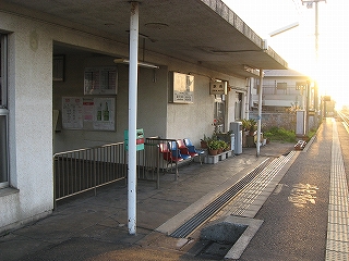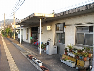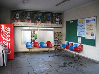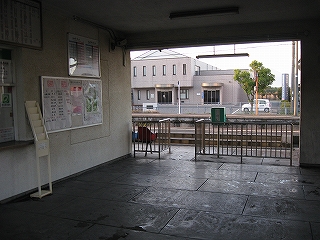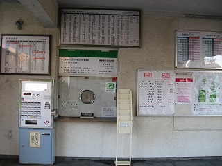 ここに着いてからしばらくしてからやっと窓口が開き、駅員が出てきて、駅舎内と鉢植えに緑色のじょうろで水を撒きはじめた。様子を観察していたが、鉢植えの水遣りは一鉢ずつしていて入念だ。大事にしているということだろうか。だが、なんかぶっきらぼうで、水やっといてくれ、と言いつけられていただけのようにも思えはじめたりした。駅舎内は外とつながったコンクリートだから水を撒いても平気だが、それでもそうするのはちょっと変わってると思った。埃を押さえ清掃代わりになるのだろうけど。6面がコンクリートというみもふたもない駅舎でいかにも無人らしい感じだが、有人の上にみどりの窓口まで営業していて、大都市に近いだけあって利用者が多いのかな、と思った。