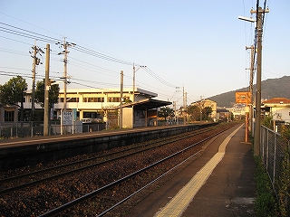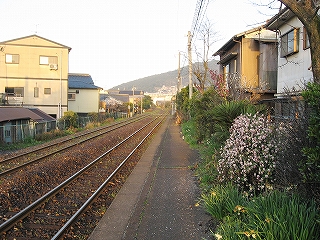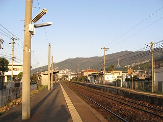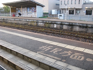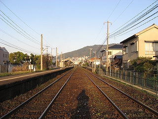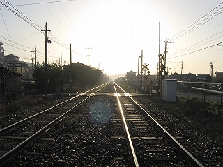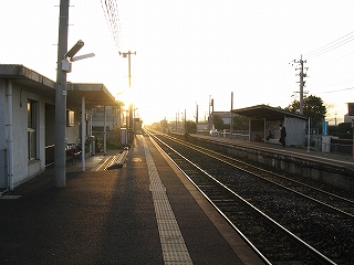 ステップを下りて、たんと下車。春の朝の気持ちよい寒さ、緊張感、朝日。あたりは何気なく住宅が立ち並んでいるが、非電化複線に、屋根なしの荒々しく感じるホームが、確かに若松港に近づいていることを想わせた。ホームには植え込みが多く、やはり南に来たのかと勝手に思った。