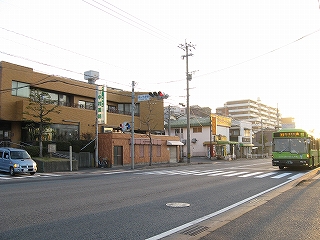 市営バス、藤ノ木駅前のバス停。このすぐ先にコンビニがあった。