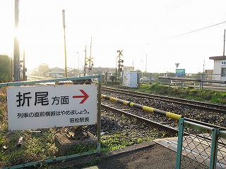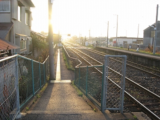構内踏切へ。駅舎から遠い。
