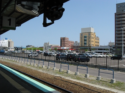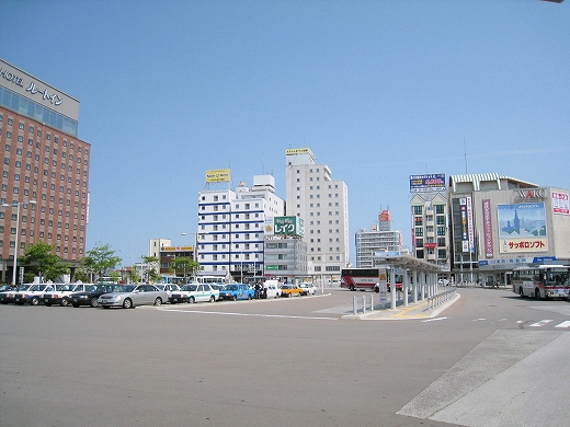 広大な駅前越しに見た函館駅。6.