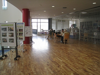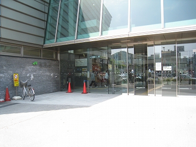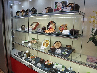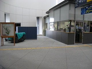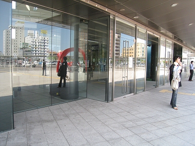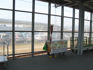 自慢のガラス面は朝市から駅を歩く人に見えるようになっていた。