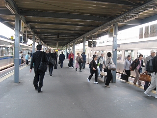 修学旅行生で混雑する隣のホーム。