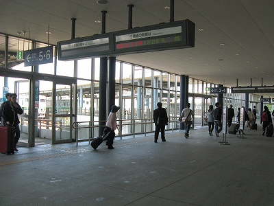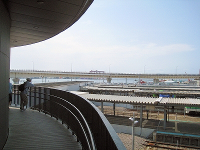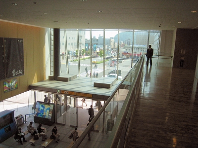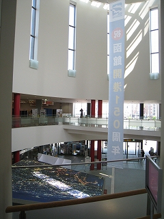 函館駅は日中でありながら、夜の煌びやかさを窺わせている。線路はどうにもこうにも ここで行き止まりの図なので、改札への通路はいくつものレールの終わりをガラス張りの向こうに見せている。だから列車が到着している様子は展示場さながらだ。