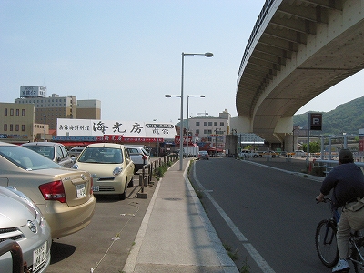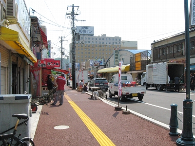 朝市方に折れて。