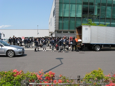 なぜかトラックから旅行の荷物を出していた。