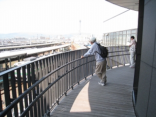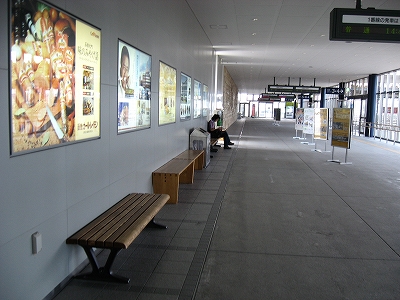 回廊コンコースが駅舎に接続する部分まですっきりと見通せた。