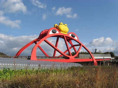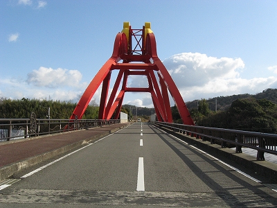 印南駅はなかなか規格がいいようで、三線が気持ちよくカーブを描いている。構内としてはそっけないが、特急が停まってもおかしくないほどだ。やっと平野部に出たか、とのびのびした気分になり、無限の吸気たる海風が鼻孔に飽和しつづける。ときおり強く風は吹き、その冷たさには顔をしかめずにはいられない。街いまだ見えねども、すでに地開け、風光の予感はあり、しかれども海の見えぬことに、少しばかし安堵している、そういう自分。風のやむときは、ホームを歩いていく私の穏やかさを、柔らかい陽差しが愛撫する。やはり南の印象を印すという地の名のいうとおりなのだろうか。隠れるように蜜柑が生っていたり、椿が咲いているのを見つけた。あの血色のかえる大橋も、深く旅の始まる前としては、或る玩具、ないし雑貨だった。