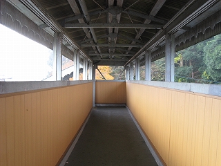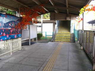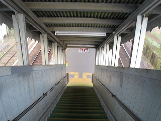 跨線橋。昔はホームの端まで歩いての構内踏切だった。