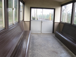 ホームの待合室。今となっては豪気な椅子が残っている。