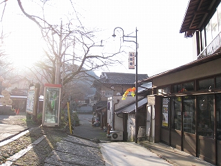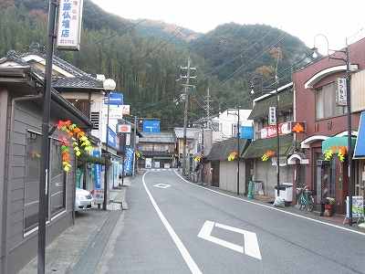すずろに街道をありく。さすがにもみぢ狩らん人のおとなふらしところにて、ここかしこに枝を飾りて人を迎へり。山の袖の深く宿場にさしたりて、夏きたるとも涼しうところに覚へにき。ゆえにいまたえて寒きことさらなり。道すがら、しし ひさぎけむ店のたて込めたり。蛍の飛びちがひたるころになりなば、河原に幕を張りて寝ぬるひとあらわるものの。つゆもいまめかず甍の低く犇めきたるけしき、はやくは にぎははしくぞ栄えにける。今は往き来なく、みそかに青らみて佇み、苔むす古板に遠き地の名をいたずらに書きたるのみなり。街道より外されにけむ。さあるしも、さすがになかなかにゆかしう心地する町なりて、ほども迫りたるに、せはしく見ありきてけり。いにしへの町とはいかならむと問はれば、すかべらくこの町見せまほし。残さむといふ心なくて、さながら残りたり。ありがたき町なりき。河原にも出でなむと思ひしかど、ほどの後ろ安からじて思ひとどみき。あな、またおとなひてしがな。
