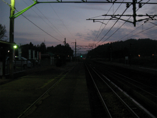 決まった後、暗がりの中、島ホームの待合室の取れ壊されて ならされた砂利敷きなどをで踏みならしくるくる回る。もう夜はかなり肌寒くなっていて、蛍光灯照らす新しくされたパネル風よけ開放式の待合は妙に冷たく肌に刺さった。それから跨線橋を渡って、駅舎の方に戻り、駅前をもういちどぶらついた。国道が走っているくせに、何の頼りにもならないということに虚脱する。