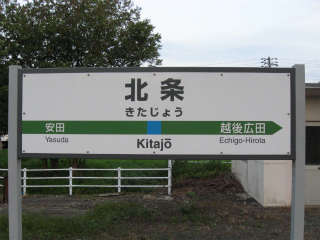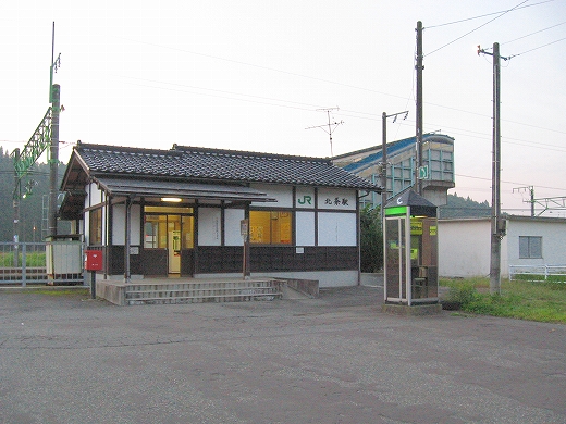 新潟に入ってそういやプラットホームが固く広くまっすぐ長いことが多いなと思う。そういう矩形塊が山間部や平野部にどんと張り伸ばしてる駅のうちの一つでもある。読ませ方の違うきたじょうと書かれた駅名標に、朝まだきの冷たい風の中、異郷に来た感じが得られた。きたの響きがありがたくて納得しているんだから、単純だ。
