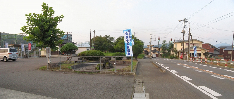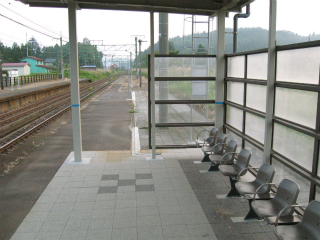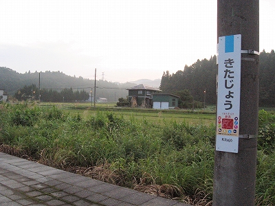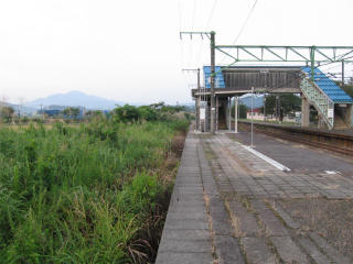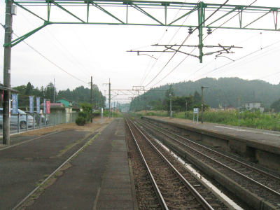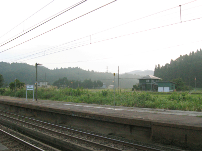 明ければ夜来たときと違いこんなところだったのかと思うことがあるが、ここは夜に見たとおりで変わりないところだった。柏崎から長岡まで行く途中にわりあい寂しいところを通るが、ここはその途中にある駅の一つになる。裏手は草はらだし、表に出てみても飲料販売機と信号で、どっしりまとまった集落でもなく、何でこんなとこに駅できたのかなと思わないでもない。むろんお住まいの人にとってみれば、ここがないと困るわけで、なかったら引っ越すかも、なんていう人も出てくるかもしれないと思えてくると、駅が定まってきたように見えた。