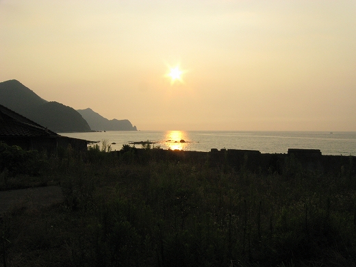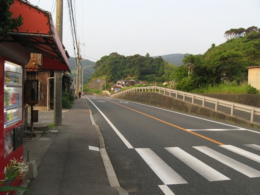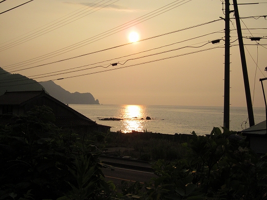 私はシーサイドまで夕日を見に行った。静かな国道沿いの集落で、屹立せる山が迫っている。煙草屋が自販機に休みの張り紙を出している。
