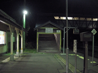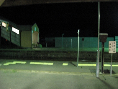 とにかく外に出よう、と出た瞬間、風が吹かれ、もの凄い勢いで寂しさに襲われた。ぞくっとし、体が固まって動かなくなる。死を忘れるほどの凄涼さだった。見えるのは、ただ漆黒の塊だった。そして外灯がかすかにすぐ近くの草々を照らし出しているに過ぎない。とにかく目の前があまりに黒すぎて前に進めず、私はただ灯りのある駅舎の玄関口に呆然と佇立するばかりだった。
