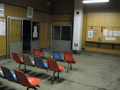 騙されたかもしれん、と思いつつ、とにかく駅舎のある乗り場へと急ぐ。全体とそしてガラス越しに中を見て、これは外したな、と思った。勘違いしたのだ。ただのやや大きめのやたら古ぼけた駅である。少なくとも戦前のものだ。中に入ったがやはり長椅子も飾りもなかった。