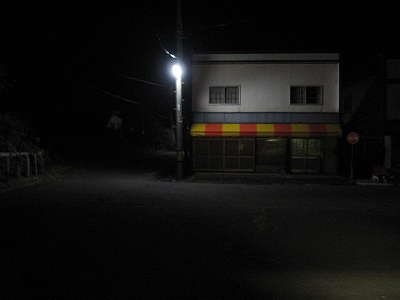 肚に力を込めて漆黒の塊を坦々と突っ切りはじめる。そのうち変わるだろうと思ったが、まったく質量は変わらない。苦しく、まるで黒曜石のナイフが裏返しになったかのようだ。息を凝らし歩き続け、国道に出たところ、意外にもコンビニにともしびが、なんてことはなかった。四角い建物は結構あるのだけど、店の灯りは見当たらない。しかし自販機は一台だけ光っていた。迷わず横断し、500mlのコーラを購入。その場ですぐ開栓して思いのままに飲む。