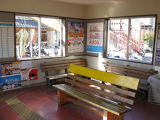 下りホーム待合所の様子。こっちのホームには椅子がない。
