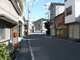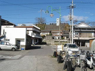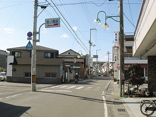 駅前に戻って。駅前のT字路にて、まっすぐを見て。ちょっと不思議な風景。