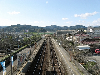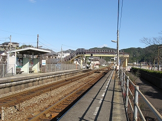 上り方の風景。レールは左へとカーブし、吾桑駅へと向かう。