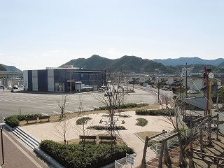展望台たるさっきの跨線橋に上ると、駅裏の風景にえっ、と驚かされた。駅の表とは比べ物にならないぐらい、完膚なきまでに整備されている。これはいったいどうして。どれも模型みたいに、小さなロータリー、バス乗り場といろんな設備が整えられているが、だれひとりとして、その姿が見えない。おそらく、これから宅地開発が始まり、発展していくことが見越されているのだろう。離れて走っている低い高架道路は、このときは未開通の自動車専用道の須崎道路で、この開通とも合わせているのかもしれなかった。