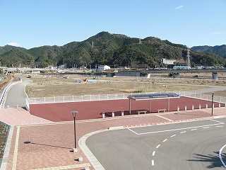 きれいに整備された駅の裏。赤いところは初めテニスコートかと思った。