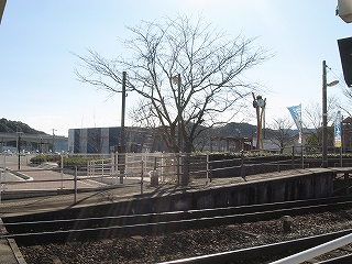 踏切入口前にて。まっすぐ行って左折すると駅舎。