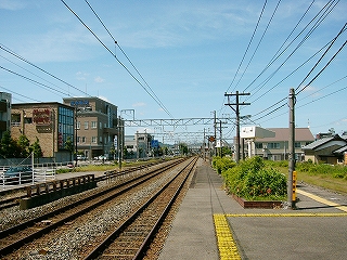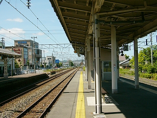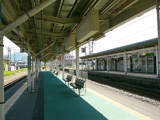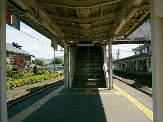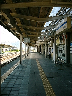 待ち人の少ないホーム下り方には木造の待合室があり、遠くに見えるくぐってきた跨線橋も木造のようで、利用者が多い駅であるものの、昔からのものを大事に使っている駅のようだった。