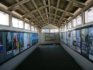駅前の歩道にて。ちらっと見える木造跨線橋の断面や堂々とした