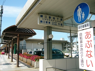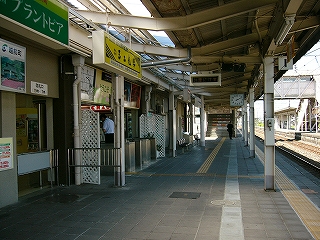 単式ホームの、旧切り欠きホームにて。左手はタクシー乗り場だった。