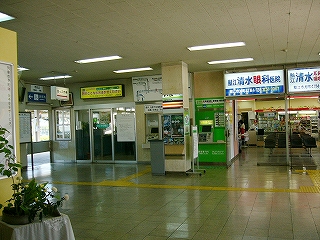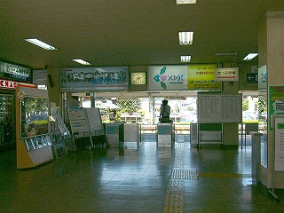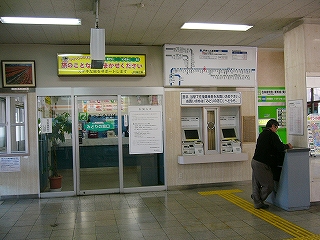 改札口とみどりの窓口。みどりの左隣に夜間改札口がある。