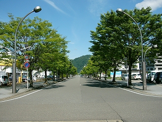 福井方に伸びる道。1.5車線の道に街路樹、融雪装置。歩いてみたくなる。