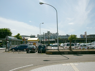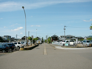 不思議なことに駅前の駐車場の舗装は敷石で詰めてあった。
