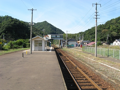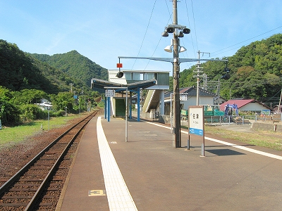 ホームにいると、山の雰囲気だ。海面はひとひらも見えないし、感じられもしない。だからこの先も後も汽車は、海に迫る山崖をくぐっていくだろうことしか想像しなかった。駅も竹野よりも素朴なもので、あちこち無数に造られた無名同然の木造りの駅にすぎない。 「やはり とある駅という趣きだ、有名地から一足伸ばしたらずっと良かったなんていうことはなかったか。しかし竹野も、元はこんな駅や土地なのを、人の目で評価され造り上げられたものかもしれないな。」