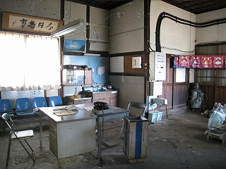 とりあえずと、いそいそと駅舎に向かうと、50代くらいのしわがれた男の会話が聞こえてくる。私は客だからと、そのまま待合に入ると、二人の作業姿の男性が煙草吸いながら休憩していた。目が合う。その二人とも無言になる。たぶん遠方からの客が降りるなんて思いもしなかったのだろう。
